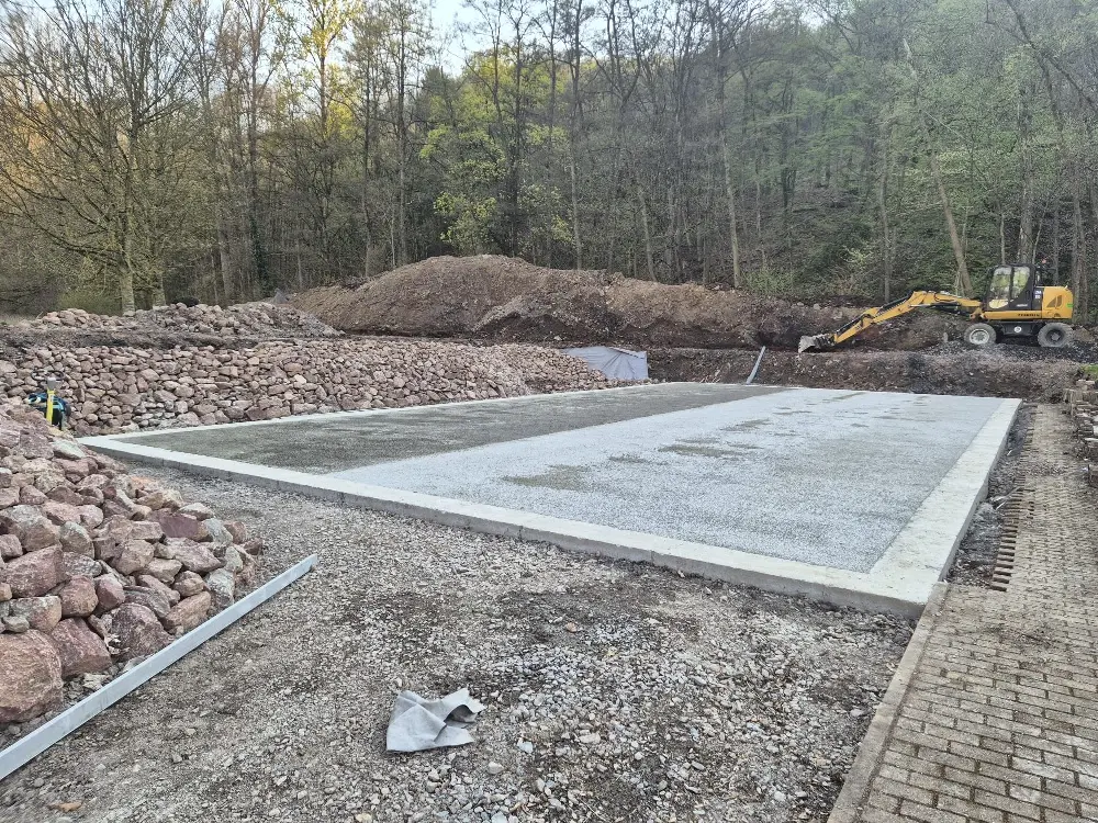 Als nächstes wird die Bodenplatte gemacht und der Hang weiter befestigt.